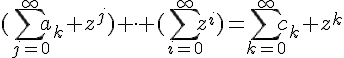En utilisant le produit de Cauchy, puisque une des 2 séries converge absolument (Théorème de Mertens), je peux écrire: