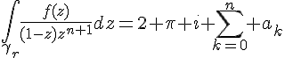 tu as une intégrale de la forme f(z) * 1/(1-z) * z^(-n-1)