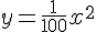 Alors allons-y. Comme la prabole a pour sommet l'origine des axes elle a pour équation y = Cx² et comme elle passe par (-100,100) donc C = 1/100