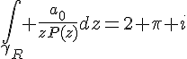 P n'as pas de zéros (sic) donc 1/P est holomorphe, donc le seul pole de a0/zP(z) c'est le pole en 0 de résidu a0/P(0)= 1 d'ou le résultat.