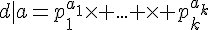 un diviseur de a s'ecrit p1^h1*p2^h2*...*pk^hk avec les hi choisit entre 0 et ai