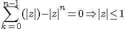 Montrer que 1+z+z²+...+z^(n-1)-z^n=0 => |z|<=1