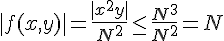 valeurabsolue(f(x,y)) inférieur ou égale a M^3/M^2 c a d a M