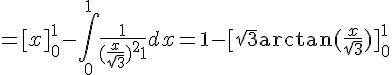 - 1/(Racine de 3) * arctan u (avec u= x / racine de 3)