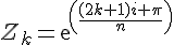 Les Zk sont de la forme : Zk= (-1)^(1/n) * exp(i2kπ/n)