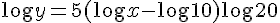 En échelle arithmétique ça serait juste y=5*(x-10)+20 mais en échelle log je n’y arrive pas :
