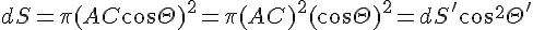 Or, quand je calcule l'aire du cercle projeté, je trouve une relation en.