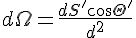 En photométrie, on utilise souvent la relationqui serait d'après mon cours une relation valable uniquement dans le cas d>>largeur de dS.