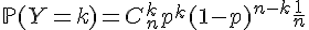 P(Y=k)= C(k parmi n)*p^k*(1-p)^n-k