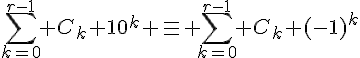 D'où tout nombre est congru modulo 11 a la somme alternée de ses chiffres. (en commençant en + par le chiffre des unités)