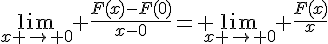 Donc nous devons montrer que les deux fonctions sont égals à 1 quand x tend vers 0 ? de cette façon nous allons montrer que F'(0) = 1?