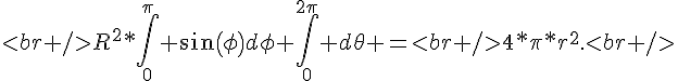 L’integrale entre 0 et 2pi de dtheta fois l’integrale entre 0 et R.