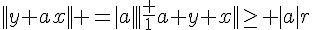 ceci implique par homogénéité que pour tout a appartenant au corps K, ||y+a.x||>|a|.r