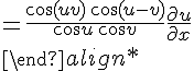 il faut trouver que du/dx =cos3v.cos(u) / cos(u+v)cos(u-v)