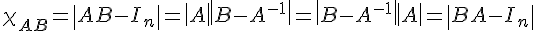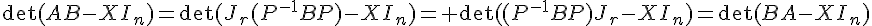 (Je me souviens juste qu'on écrivais des matrices blocs de tailles 2n il me semble pour exprimer det(AB-X Id)), et que ces deux matrices commutaient, donc c'était gagner).