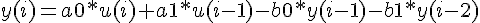 y(i)=0.01*u(i-1)-0.0101*u(i)+2.0099*y(i-2)+1.0101*y(i-1)