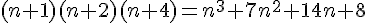 On (n+1)(n+2)(n+4)=n*+7n²+14n+8. Donc :
