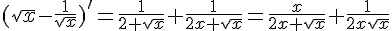 pour ça j'ai essayé de calculer la dérivé de f et je trouve (x+1)/2xracinex. ça me parait tres bizarre parce que pour étudier son signe c'est pa simple.