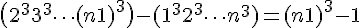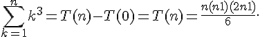 n^3 - 0^3 = 3 (1^2 + 2^2 + 3^2 +........n^2) -