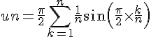 Je pense qu'il faut démontrer que un est la somme de Riemann associée à l'intégrale d'une fonction, et de calculer cette intégrale. Je pense que cela se rapprocherait de l'intégrale de la fonction sinus surmais je ne suis pas sur.