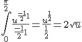 J'ai pensé à faire de cette façon : int(u^(-1/2).du) = u^(-1/2 + 1) / (1/2)
