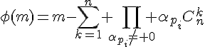 Bonjour, peut-on calculer l'indicatrice d'Euler d'un entier m en connaissant le nombre n de ses diviseurs distincts p_i et la multiplicité alpha_i de chaque diviseur p_i ? par la formule suivante ?