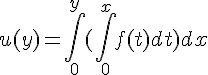 En fait je dois trouver u tel que u''(t)=f(t). Je crois comprendre ce que vous dites. Mais je ne vois pas d'où vient le t de x-t dans le résultat final. Je précise que je n'ai jamais vu les intégrales doubles en cours, là c'est pour mon cours d'informatique.