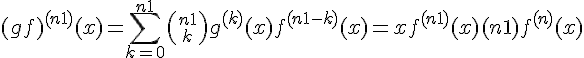 somme de k=0 à n (des k parmi n) f(dérivée (k+1)ème).(1+x²)(dérivée (n-k)ième) - somme de k=0 à n (des k parmi n) f(dérivée k-ième).(x)(dérivée (n-k)ième)