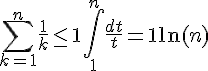 pour montrer l'inégalité je suis parti du membre de droite et j'ai mis ln n sous forme d'intégrale