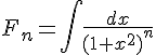 mais je me demande si tu ne peux pas calculer Fn sans faire la relation de récurrence en utilisant le changement de variable que je t'ai donné x=tanu