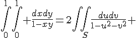 S, est le carré de sommet (0,0);(1/2,-1/2),(1,0),(1/2,1/2):
