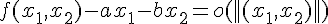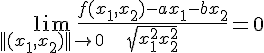 Si f continue en (0,0), montrer il existe deux coefficients a,b tels que f(x1,x2)=ax1+bx2+o(||(x1,x2)||2), utilisant les derives partielles expliquer pourquoi on a a=b=0