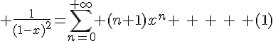 Remarquons d'abord qu'en différenciant la série géométrique, on obtient :