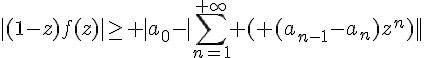 soit f(z) la série entière associé à an, montrer que f n'admet aucun zero dans le disque ouvert unité.