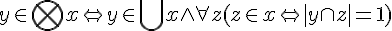 (Si je comprends le texte de Fraenkel, il s'agirait du sous-ensemble de U(x) (union des éléments de x) ayant une intersection de cardinal 1 avec chaque élément de x ; ZF suffit-il pour tous ces concepts ?)