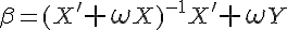 beta=inv(X'WX)X'WY (%on remarque que beta est en fonction de a,b mais on peux pas ecrire beta explicitement X matrice(nxp) et beta matrice (px1) et Y matrice (nx1))