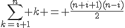 Tu devrais plutôt essayer le Latex pour faire tes sommes parce que là c'est pas facile à lire ! De plus, fais gaffe dans ta somme c'est i(i+1+n)(n-i)/2 et non i(i+1+n)(n-1)/2.