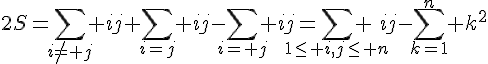 elle est égale à : 1*2+1*3+...+1*n+2*3+2*4+..+2*n +....+(n-1)n