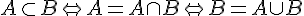 A inclut dans B est équivalent à B barre inclut dans A barre est équivalent à A union B égal B ...