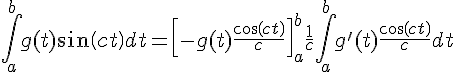 Soient a et b réels tels que a<b. soit g une fonction de classe C1 sur [a,b] à valeurs réelles. Montrer, à l'aide d'une intégration par parties, que l'intégrale de g(t)xsin(ct)dt tend vers 0 lorsque c tend vers +infini.
