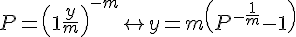 Salut à tout le monde, je veux écrire y en fonction de p et m de cette expression: P=[1+y/m]^(-m)