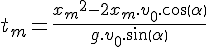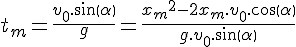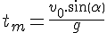 Premier exemple simple du premier ordre, déterminer, connaissant V0, le temps tm pour lequel la vitesse s’annule en y.