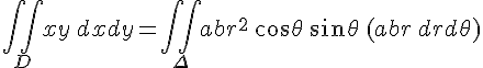 bonsoir à tous, voila je suis en difficulté sur une integrale... je dois calculer l'integrale de xydxdy sur D ou D={(x,y)|x>0,y>0, (x²/a²)+(y²/b²)< ou égal à 1} il suffit de developper D pour la calculer non? mais je vois pas comment faire...si quelqu'un pouvait m'aider. merci d'avance