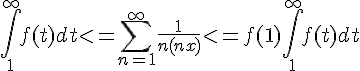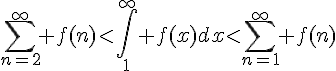 C'est la que je ne comprend pas en fait l'inégalité de droite, j'ai beau regardé mon cours n fois pour n très grand la seule inégalité possible c'est d'enlever le f(1) et d'écrire la même intégrale mais entre 0 et l'infini. Quelqu'un peut m'expliquer d'ou sort ce f(1) ? Merci