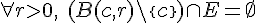 c point d'accumulation: pour tout r>=0, B(c,r) inter E non vide
