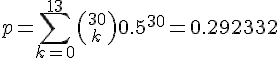 Déterminer en fonction de k (K=0,1,....,30)la probabilité qu'au moins k dégustateurs désignent par chance le bon produit.