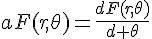 tu peux peut etre passer le F de l'autre coté et le d(teta) aussi. Tu integres ce qui te donne un lnF et une constante d'integration dependant de r