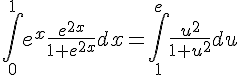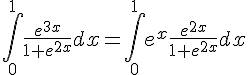 (e3x)/(1+e2x) dx bornes B=1, A=0