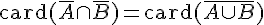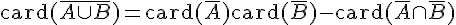 card(AUB) [A union B, barre sur A et barre B] = card (A) [A barre] + card (B) [B barre] - (card (A) [A barre] + card(B) [B barre] )