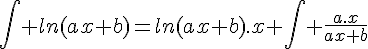 le probleme est que dans la derniere integration je n'arrive pas à la faire car soit je me retrouve à integrer de nouveau ln(ax+b) soit j'ai l'impression de tourner en rond dans les integration par parties...